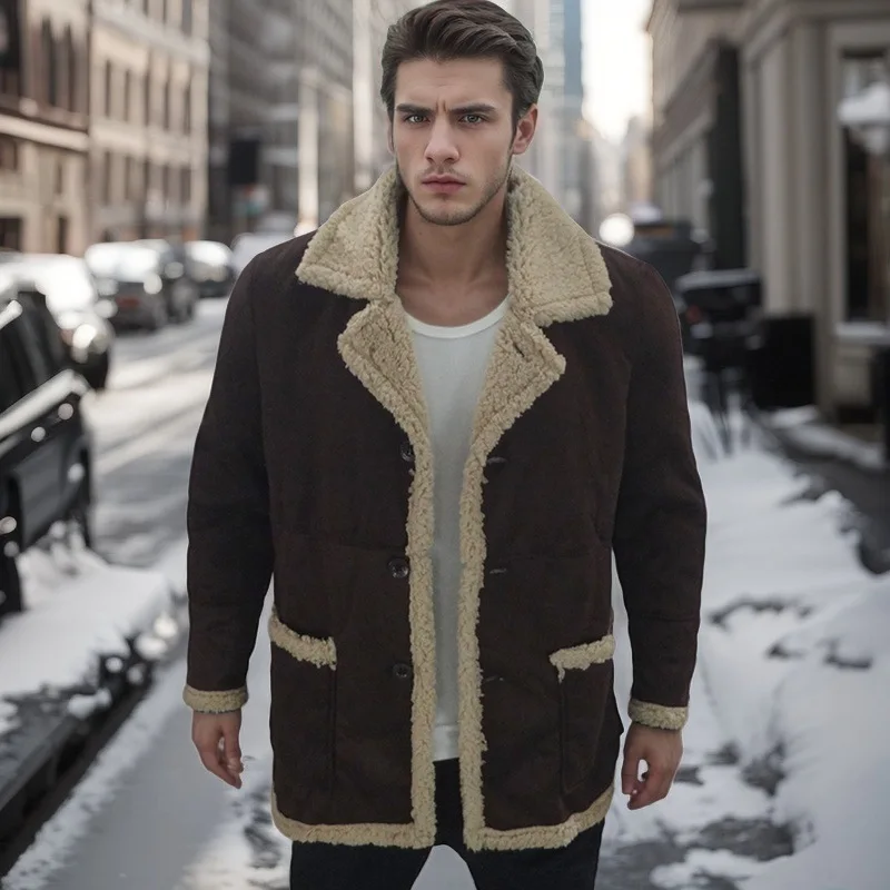 Be the first to review “Autumn Winter Shearling Thickened Coat Faux Leather Velvet Men’s Overcoat European American Jacket”