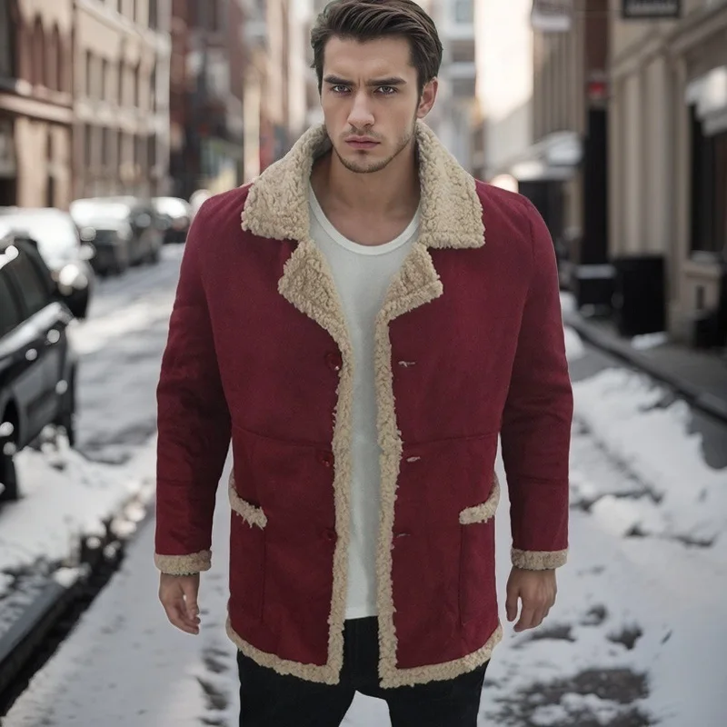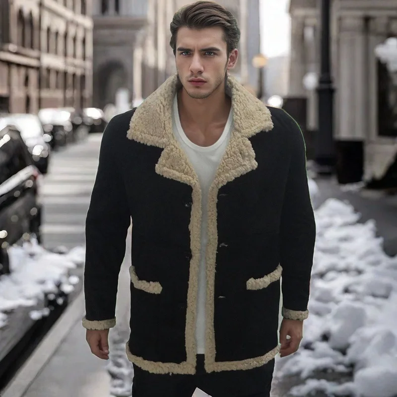 Autumn Winter Shearling Thickened Coat Faux Leather Velvet Men’s Overcoat European American Jacket