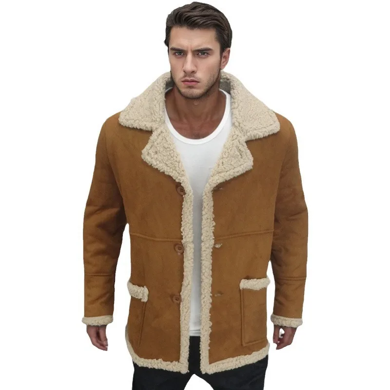 Autumn Winter Shearling Thickened Coat Faux Leather Velvet Men's Overcoat European American JacketAutumn Winter Shearling Thickened Coat Faux Leather Velvet Men’s Overcoat European American Jacket