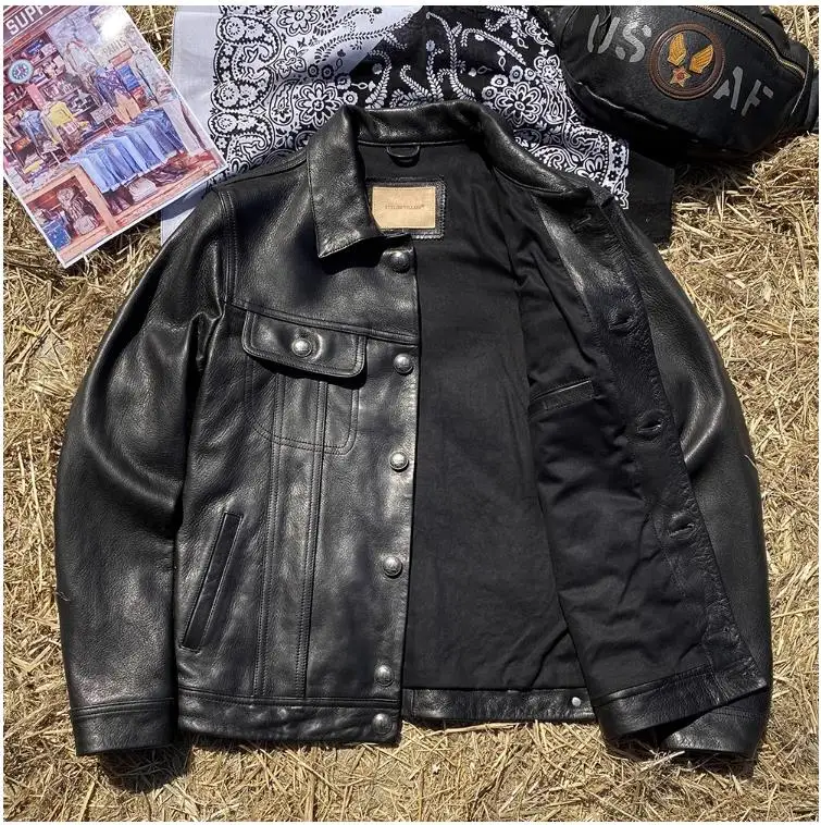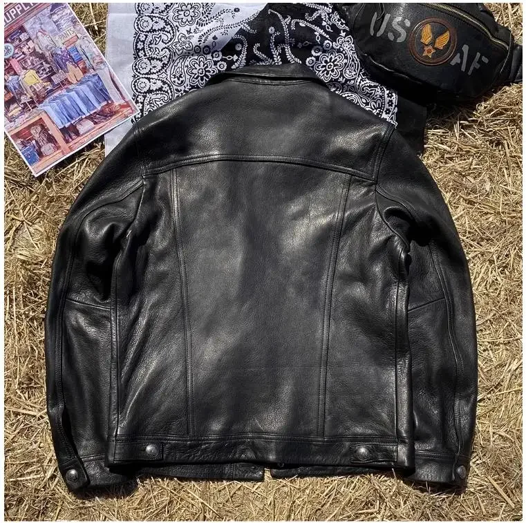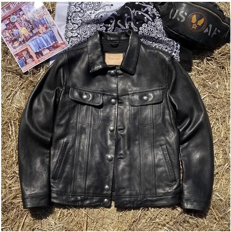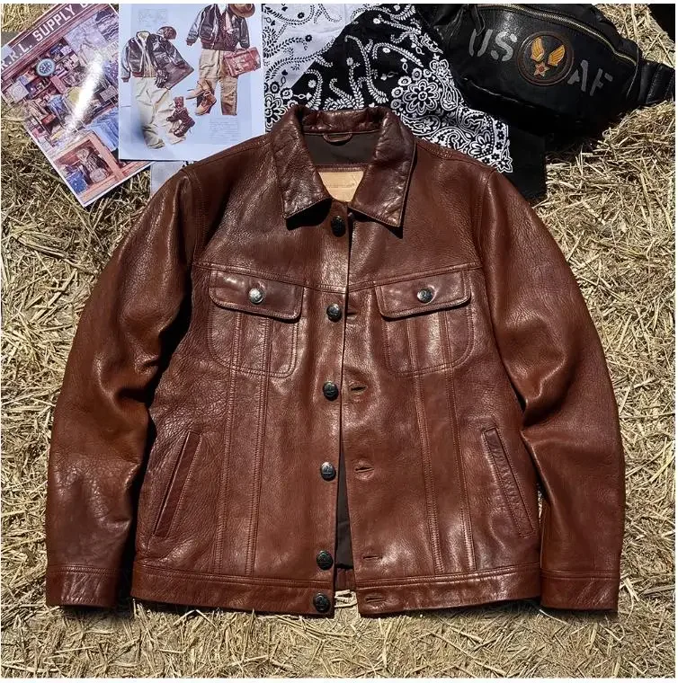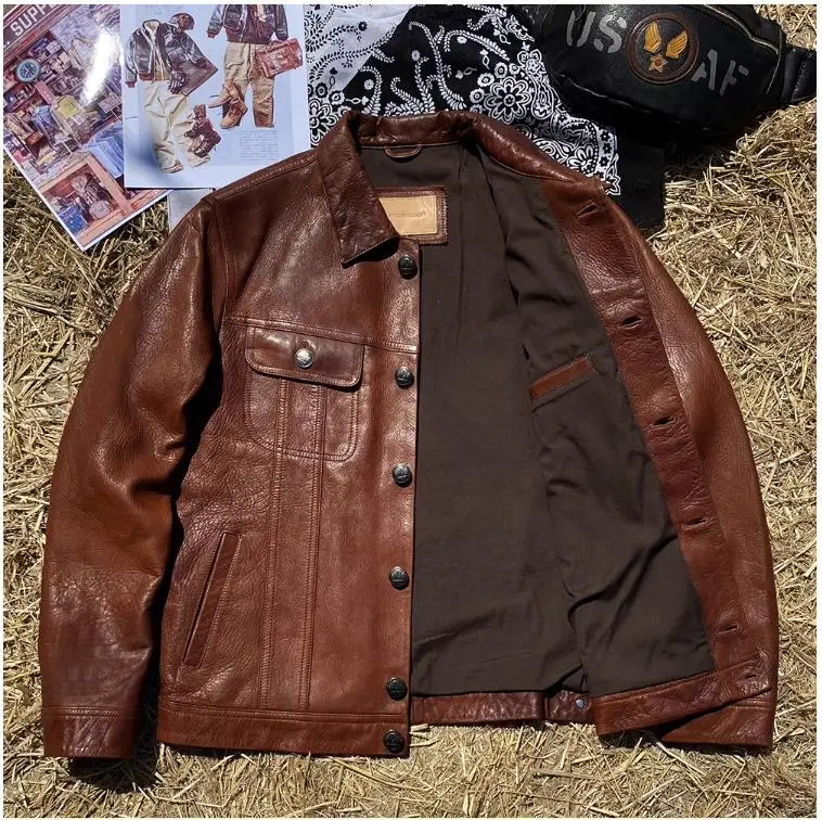 CC Shop Top.6XL Plus Brand mens natural leather jacket.classic vintage style goatskin coat.luxury slim Denim leather clothes