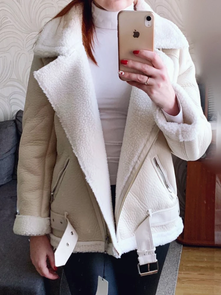 Be the first to review “Fitaylor Winter Women Sheepskin Jackets Fur Collar Zipper Parka Warm Thick Outerwear Faux Lamb Leather Jacket Coat” Cancel reply