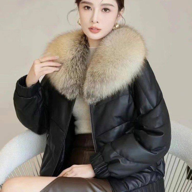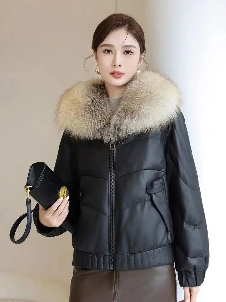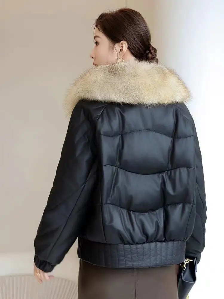 Be the first to review “High-quality Leather Down Jacket 2025 New Women’s Sheepskin Black Leather jacket Winter Fur Collor Short Puffer Parkas Fur Outwear” Cancel reply