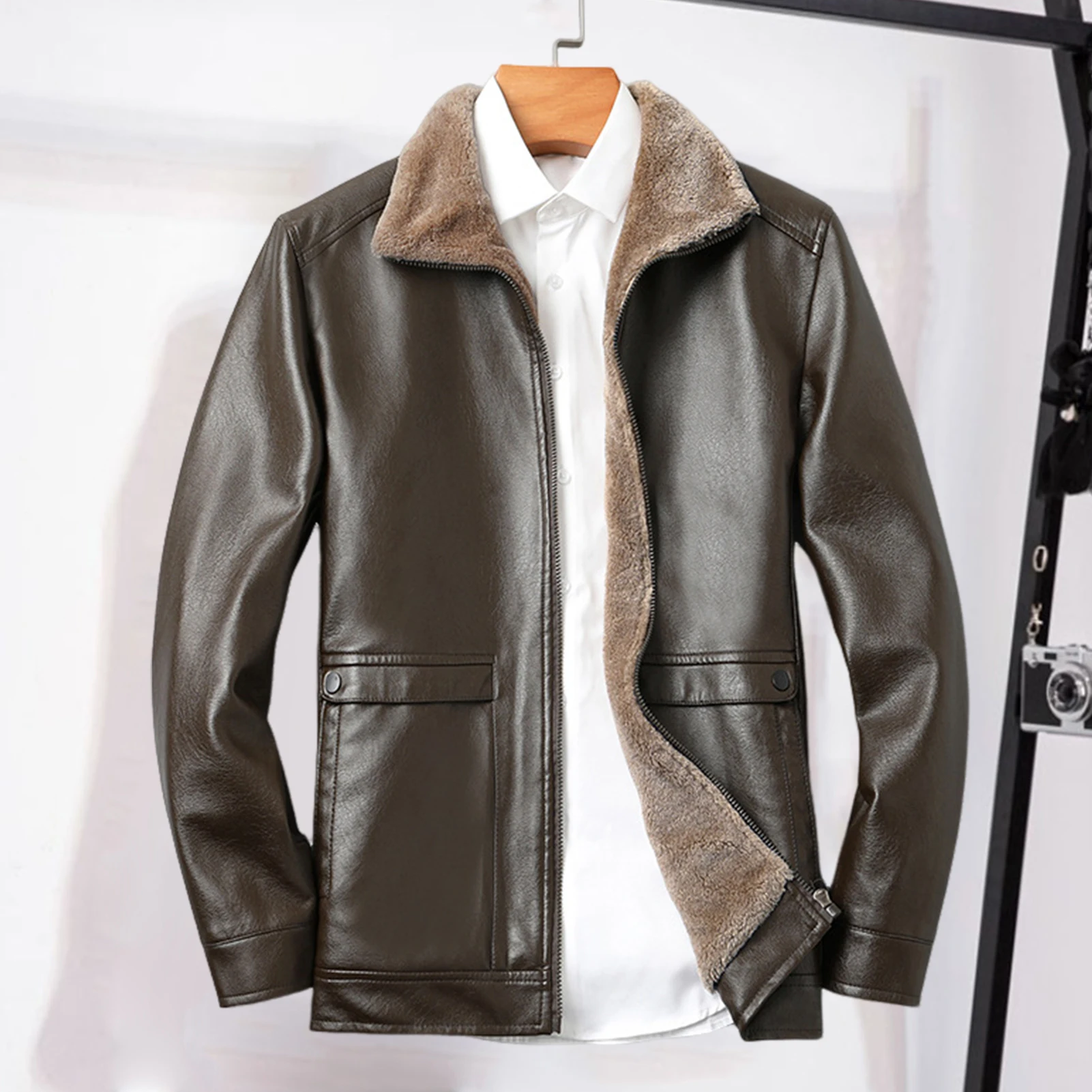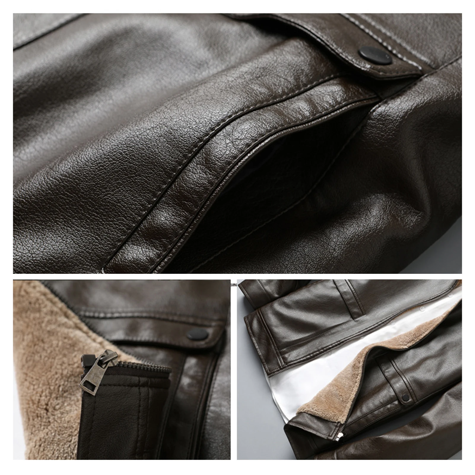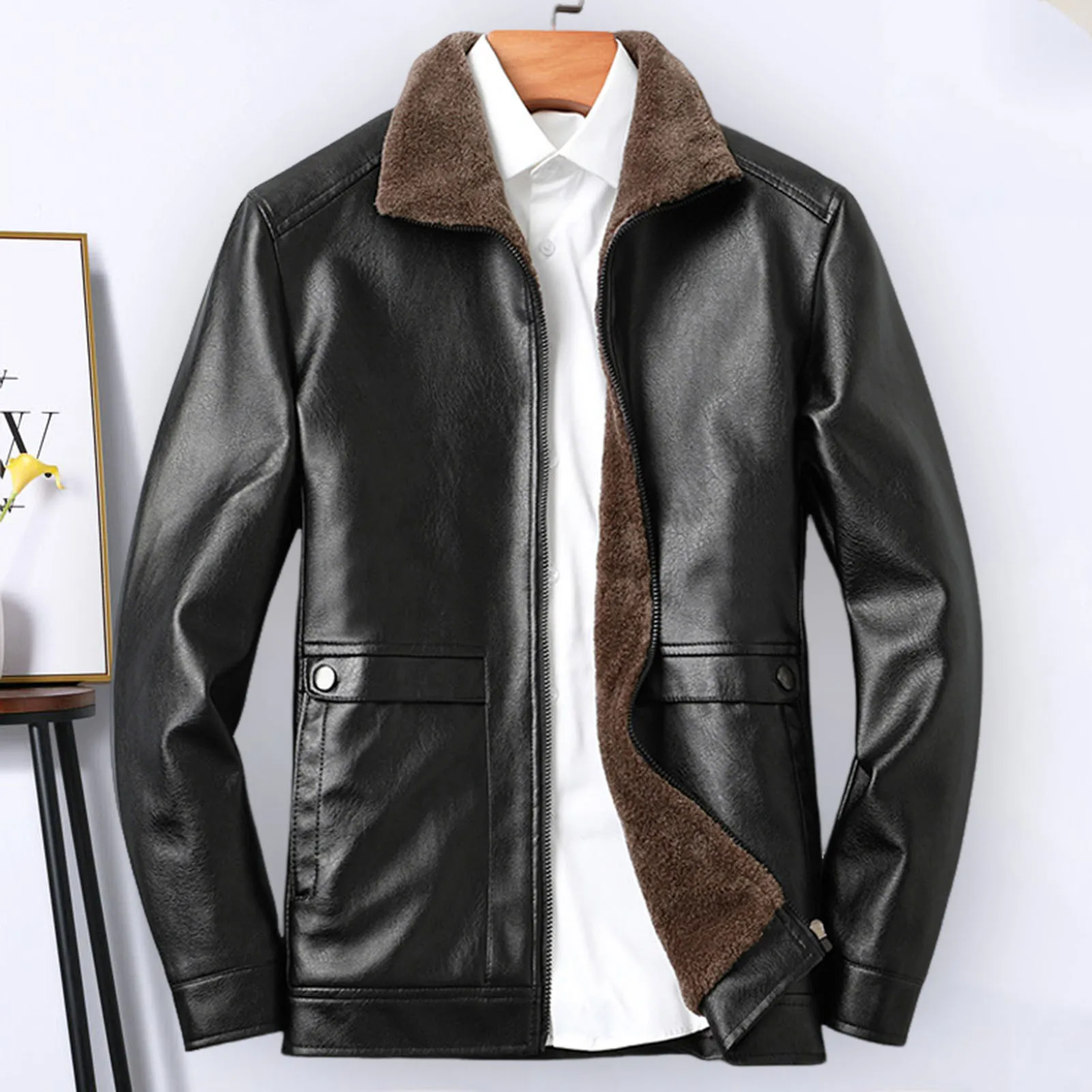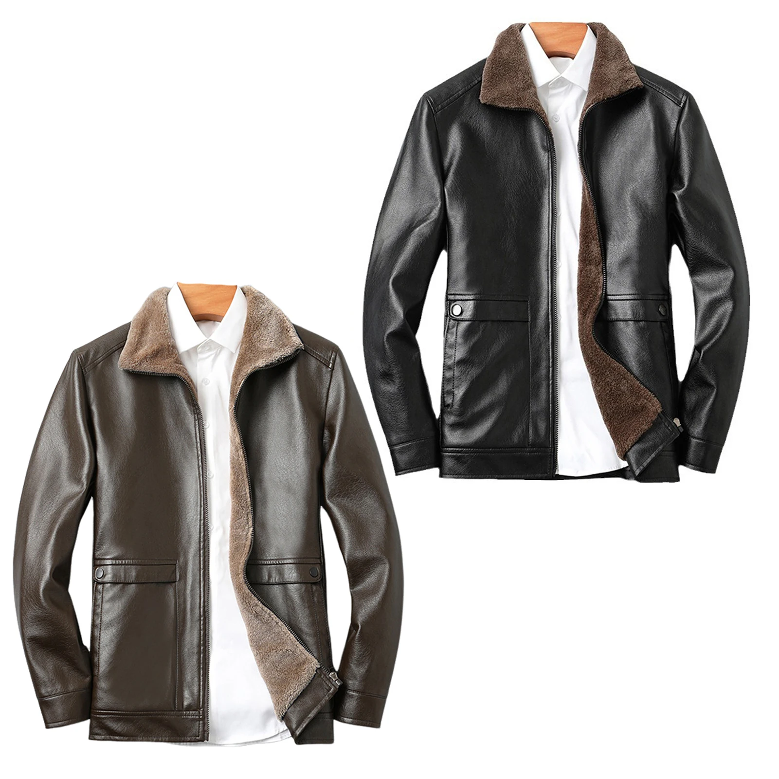 Features: Designed with lapels and threaded cuffs, this faux leather jacket offers both comfort and versatility. The thick velvet lining provides warmth during colder seasons, while the full zipper closure and two side pockets add functionality to its fashionable design.