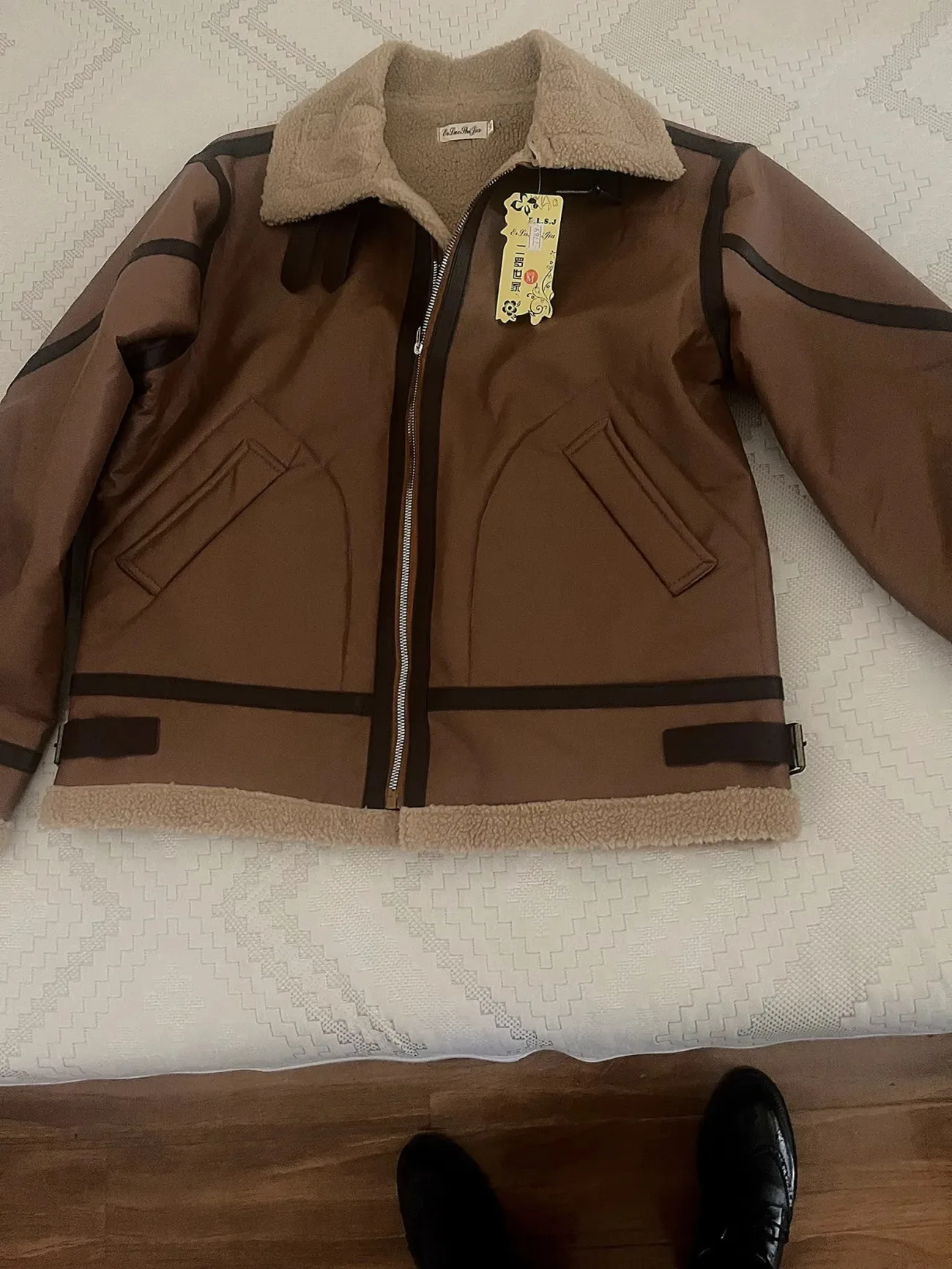 Men’s Winter Suede Jacket Faux Shearling Lined Thick Warm Motorcycle Vintage Suede Bomber Jackets Loose Fit Casual Outerwear