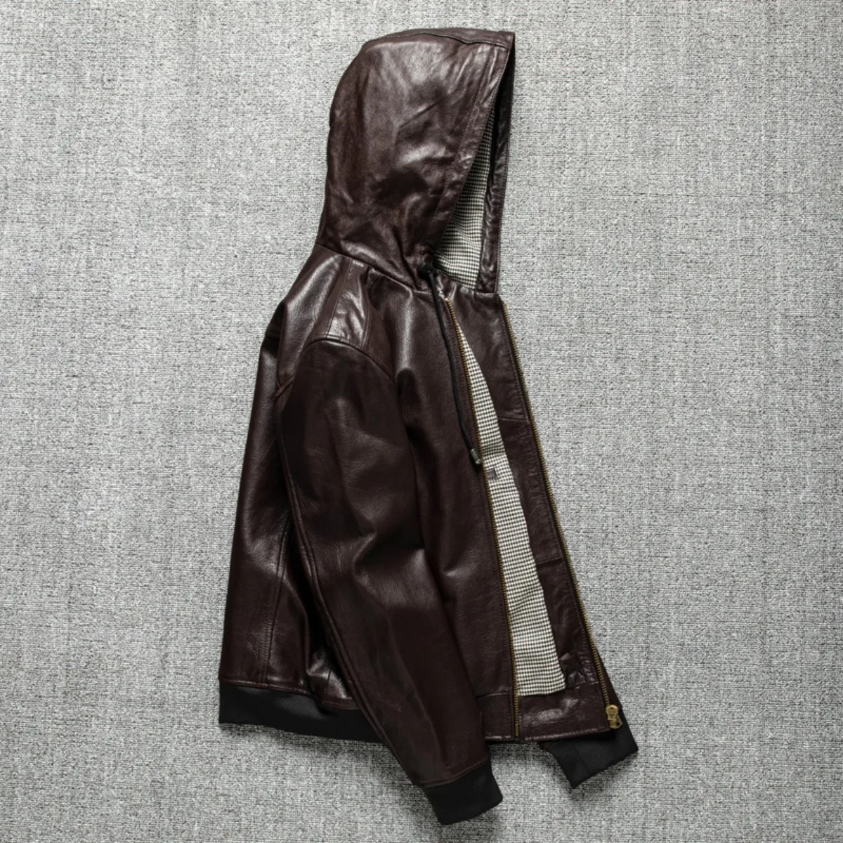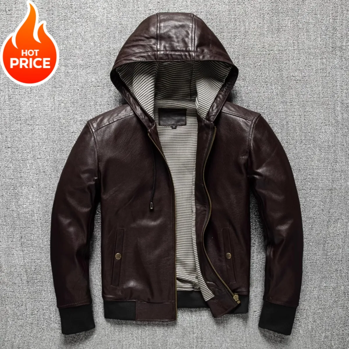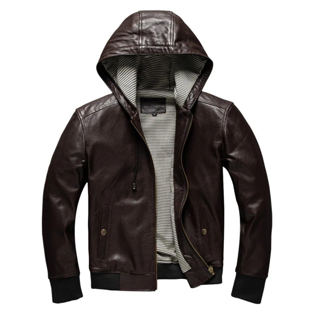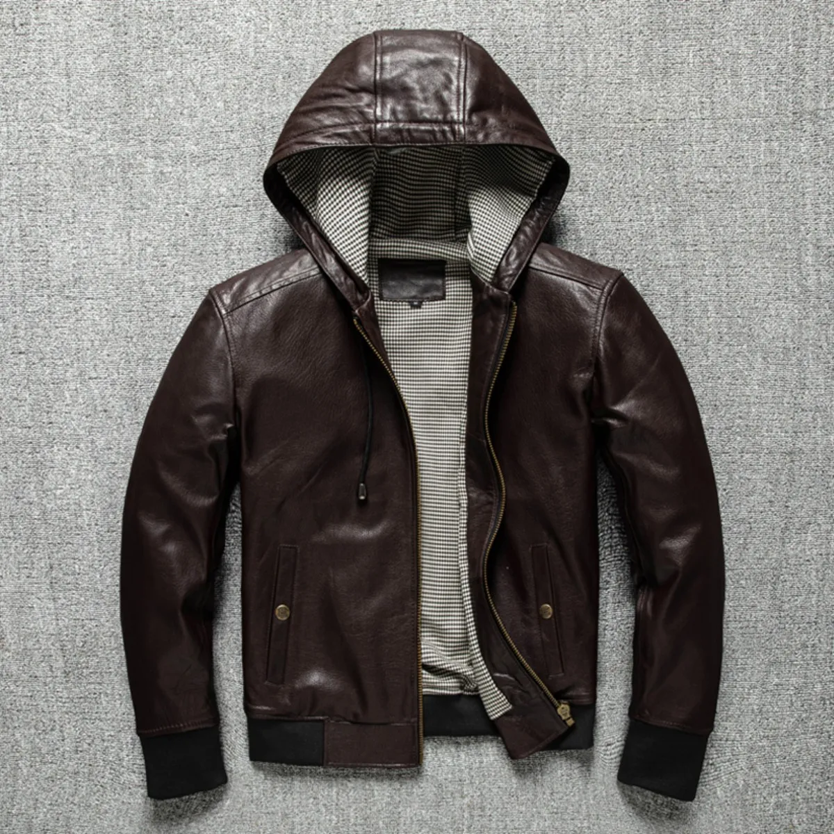 Spring And Autumn Hooded Goat Skin Leather Jacket, Men’S Leather Jacket, Fashionable Baseball Jacket, Versatile Casual Jacket