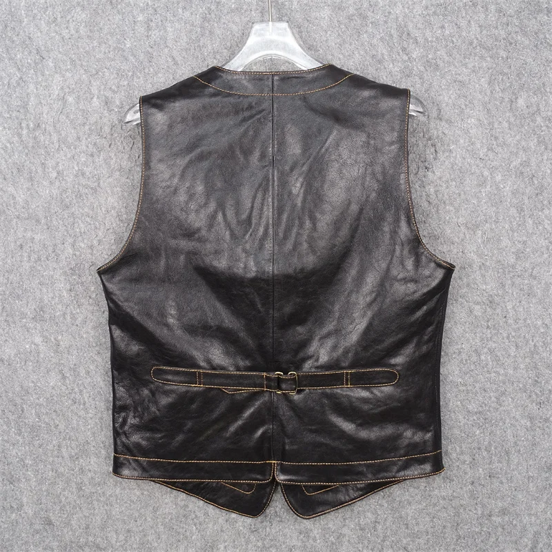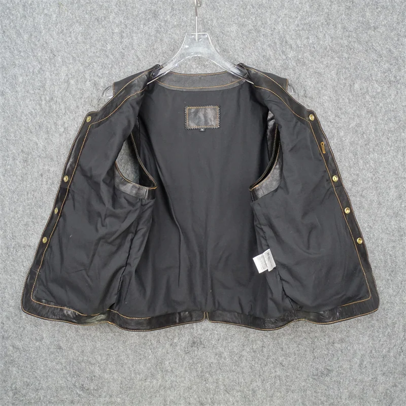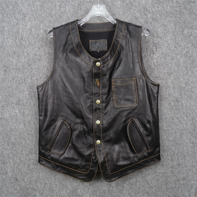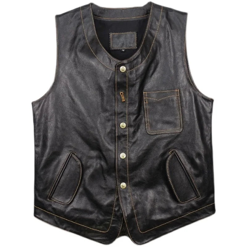 Vegetable Tanned Tire Cowhide Vest Unicorn Button Tenjin Vintage Tooling Leather Leather Jacket Men’s Vest