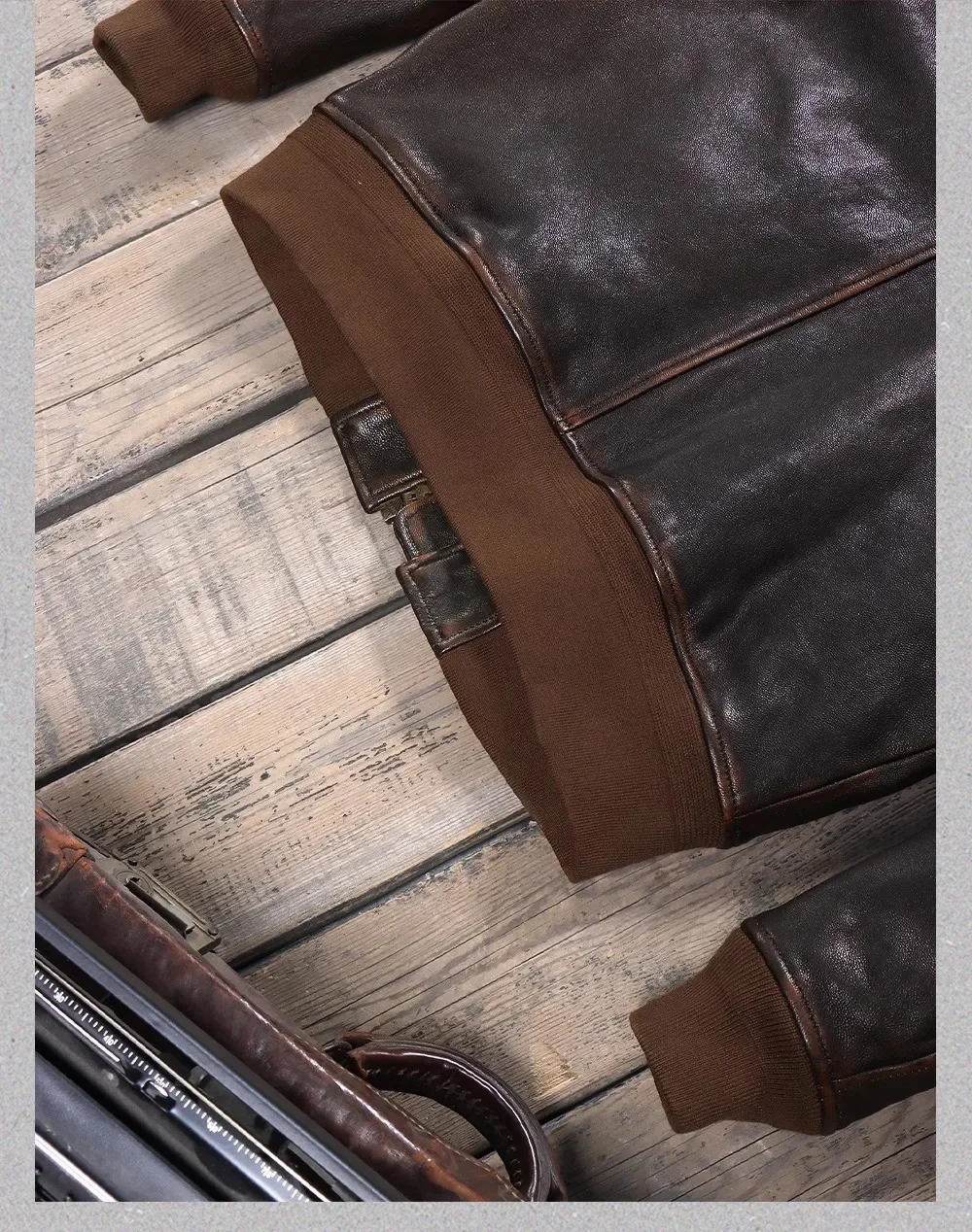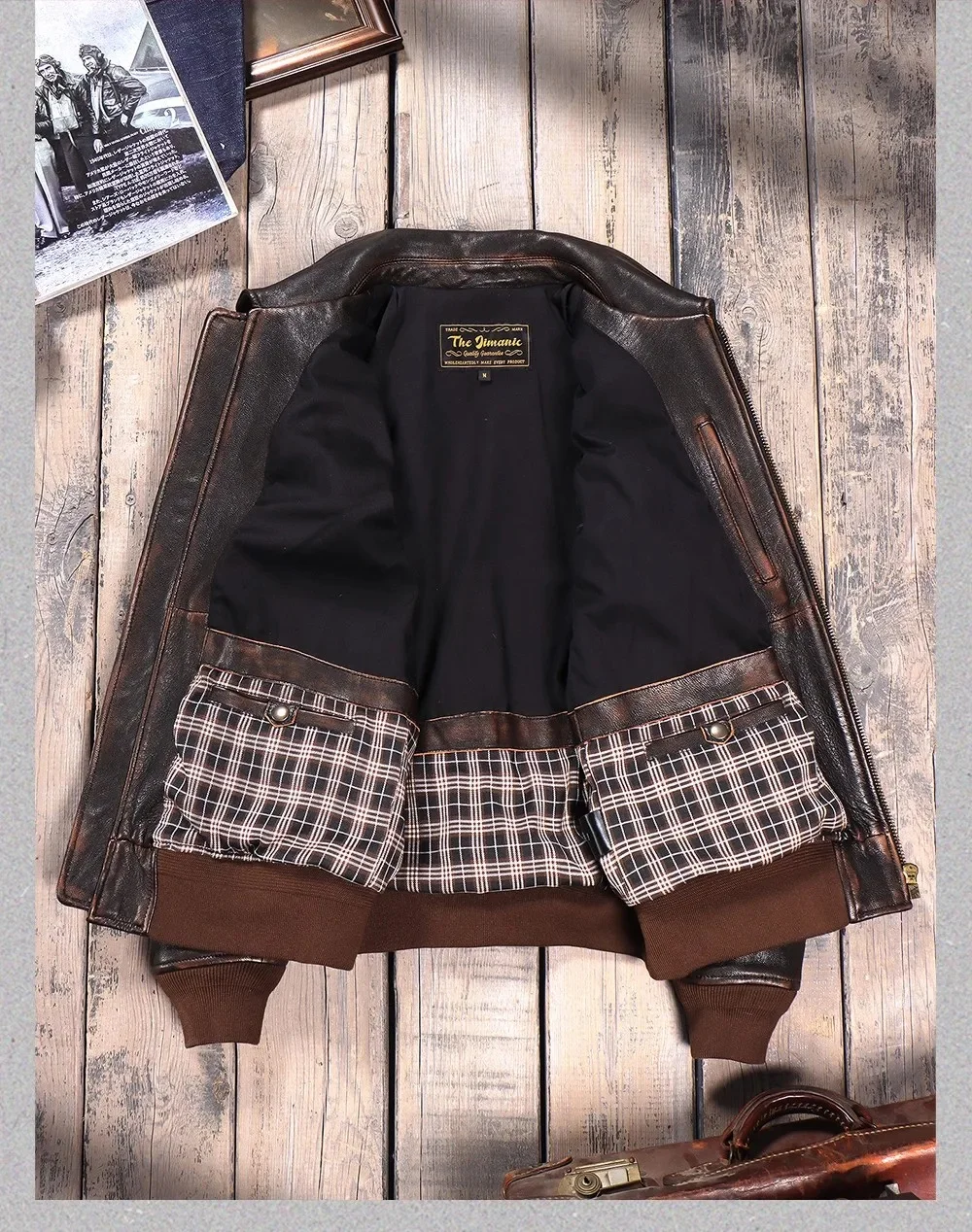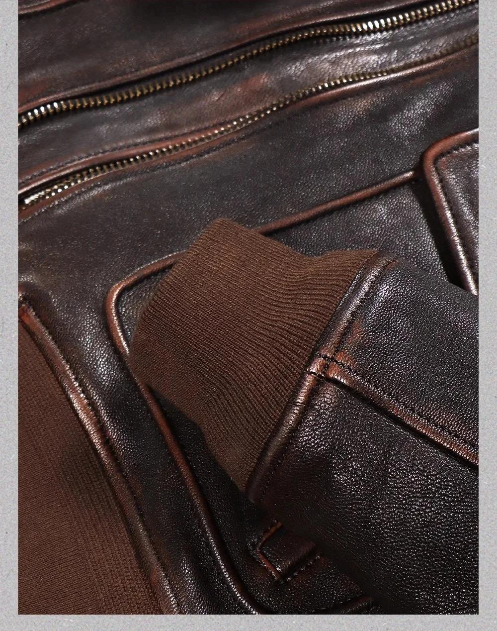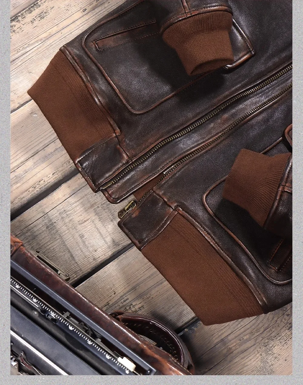 Vintage CC Shop Best,Classic Bomber genuine leather jacket.quality thick Tanned Goatskin Flight coat.Men Luxury leather cloth