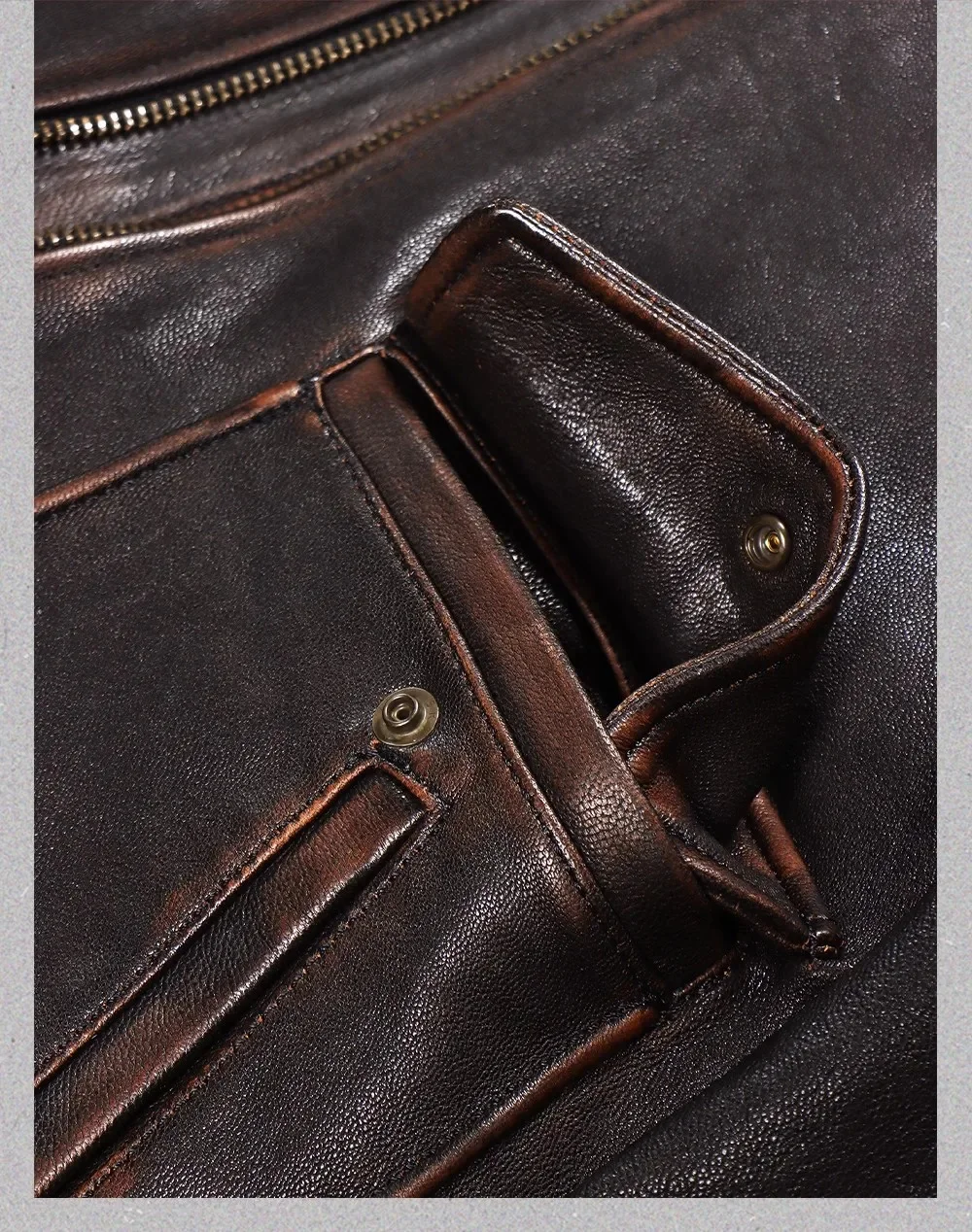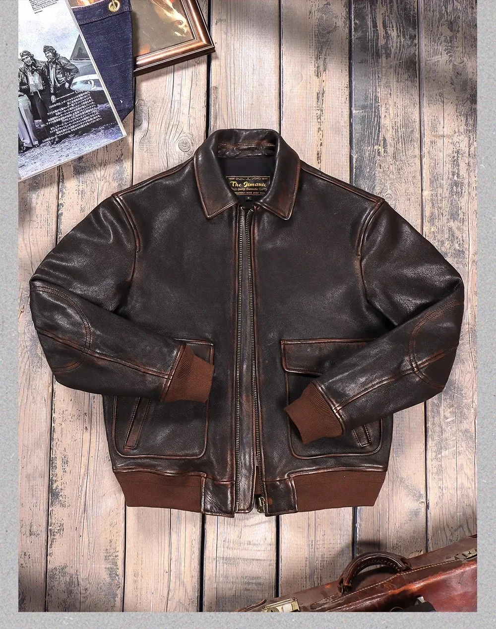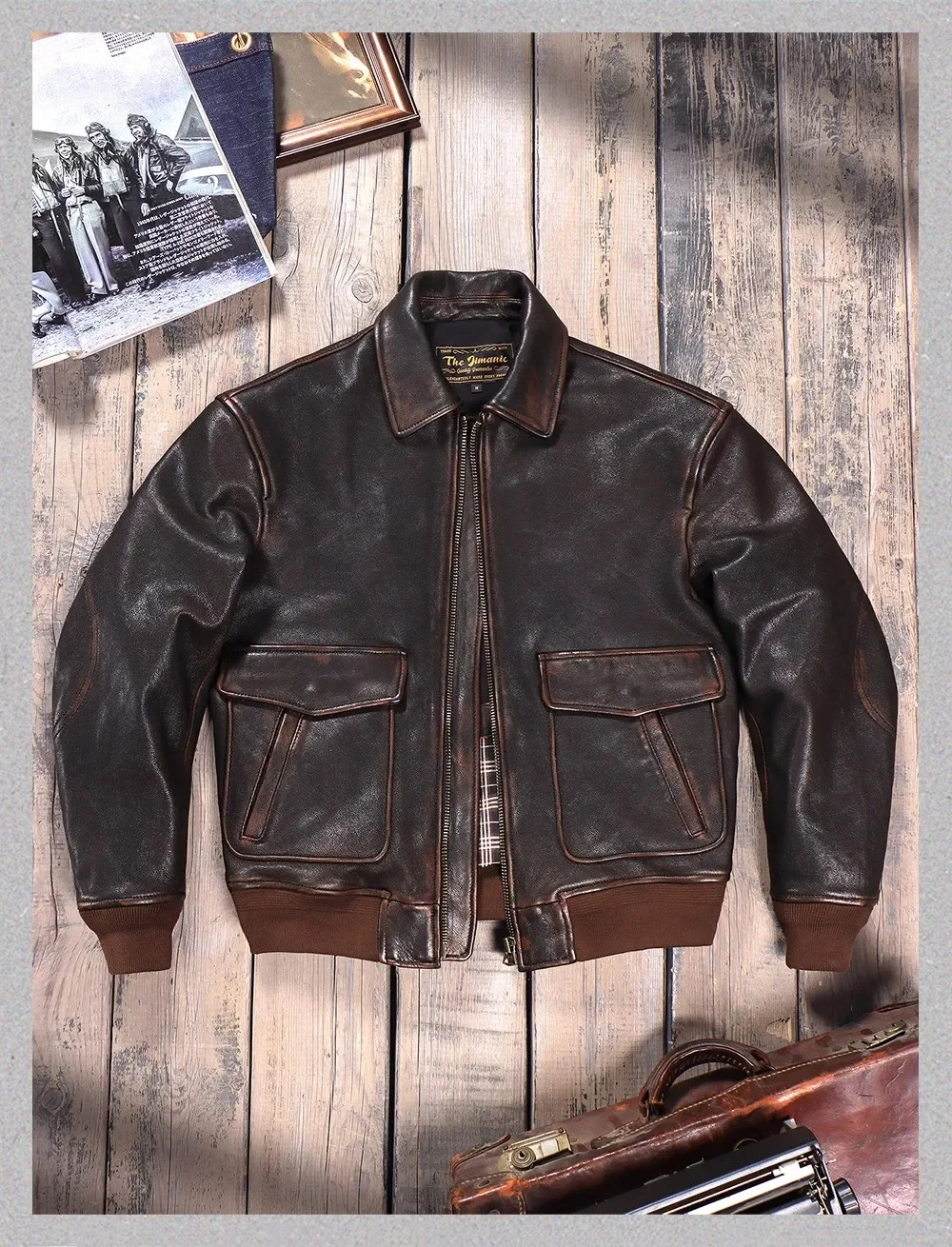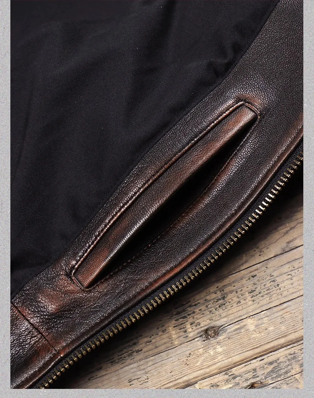 Vintage CC Shop Best,Classic Bomber genuine leather jacket.quality thick Tanned Goatskin Flight coat.Men Luxury leather cloth
