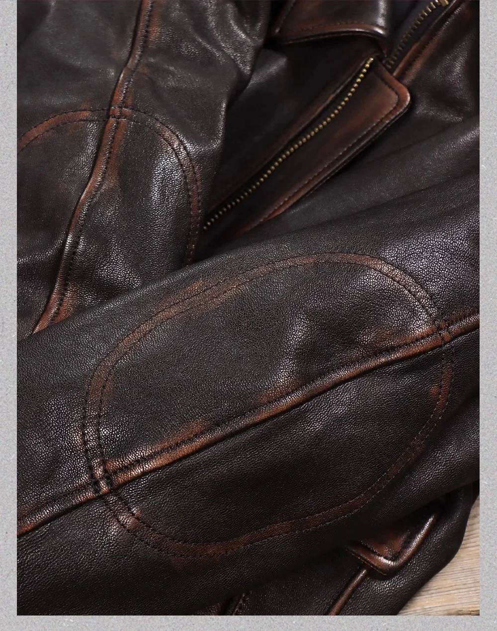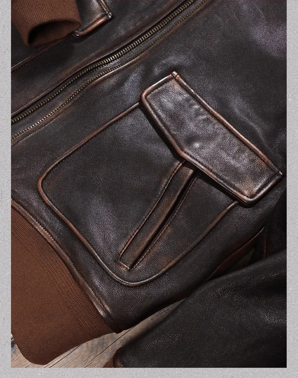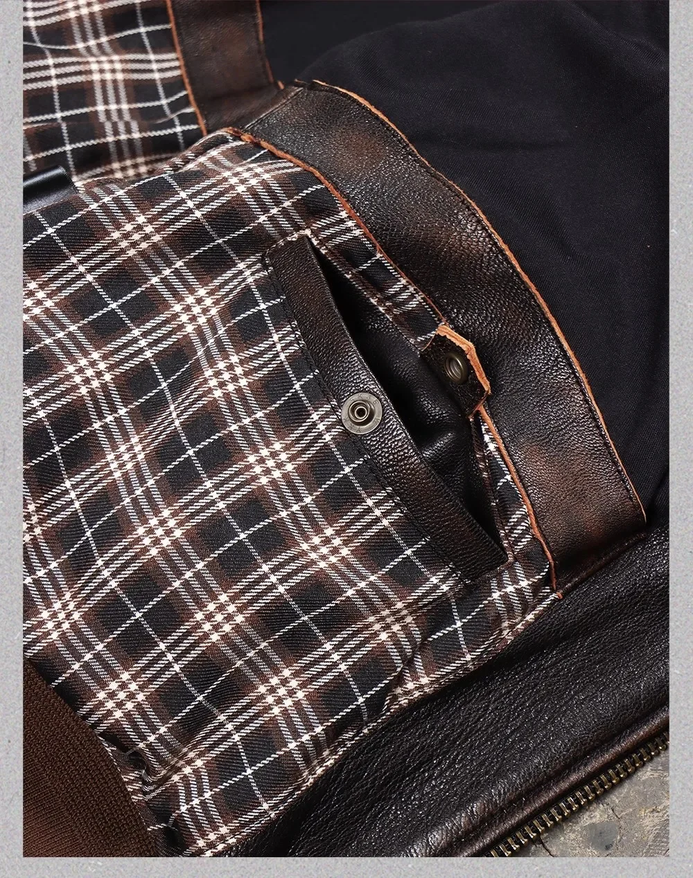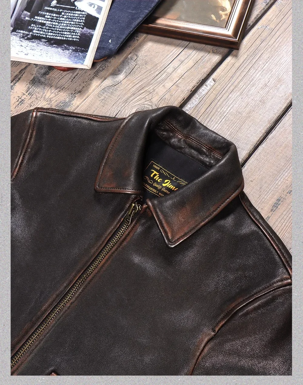 Vintage CC Shop Best,Classic Bomber genuine leather jacket.quality thick Tanned Goatskin Flight coat.Men Luxury leather cloth