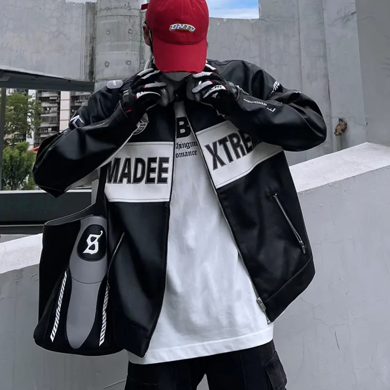 Vintage PU Leather Zipper Embroidered JacketVintage PU Leather Zipper Embroidered Jacket