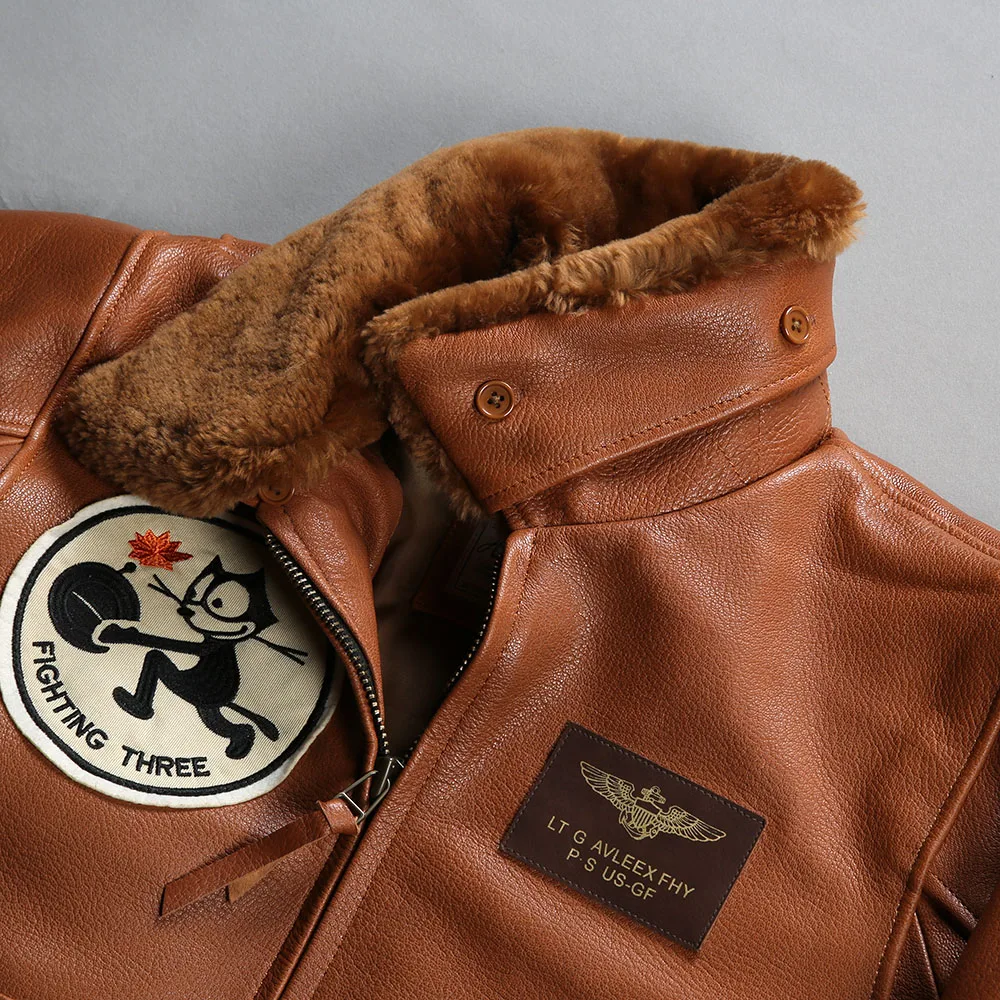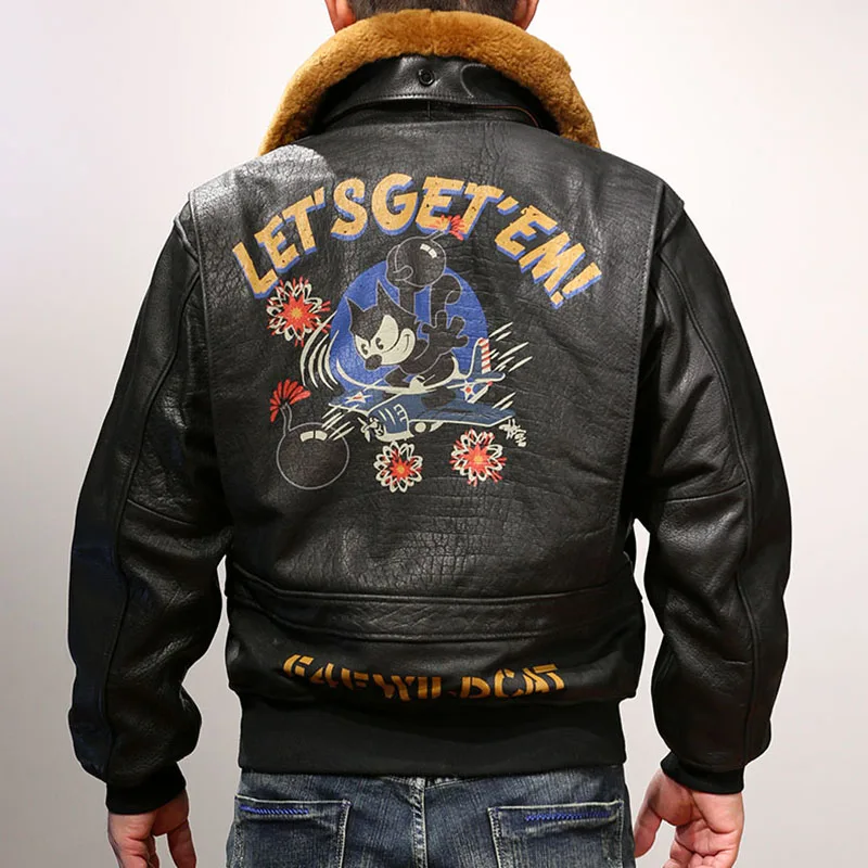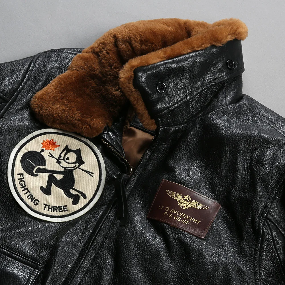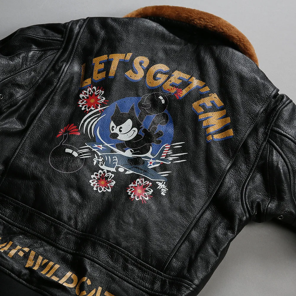 Be the first to review “Winter Bomber pilot Coat Detachable Fur Collar Black Orange Printed Cotton Lined Men’s Cowhide Goat Skin Real Leather Jackets” Cancel reply