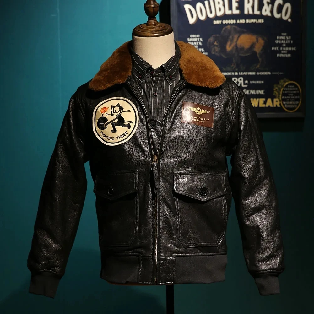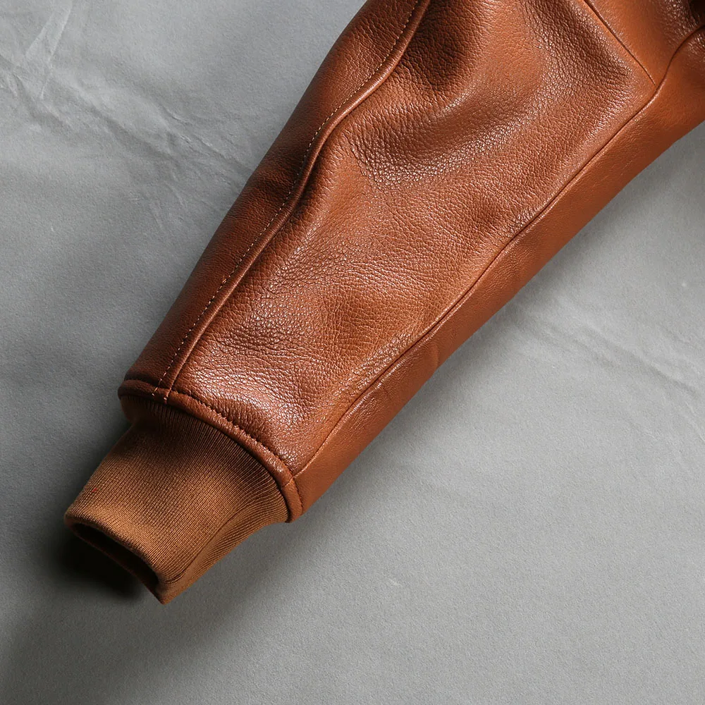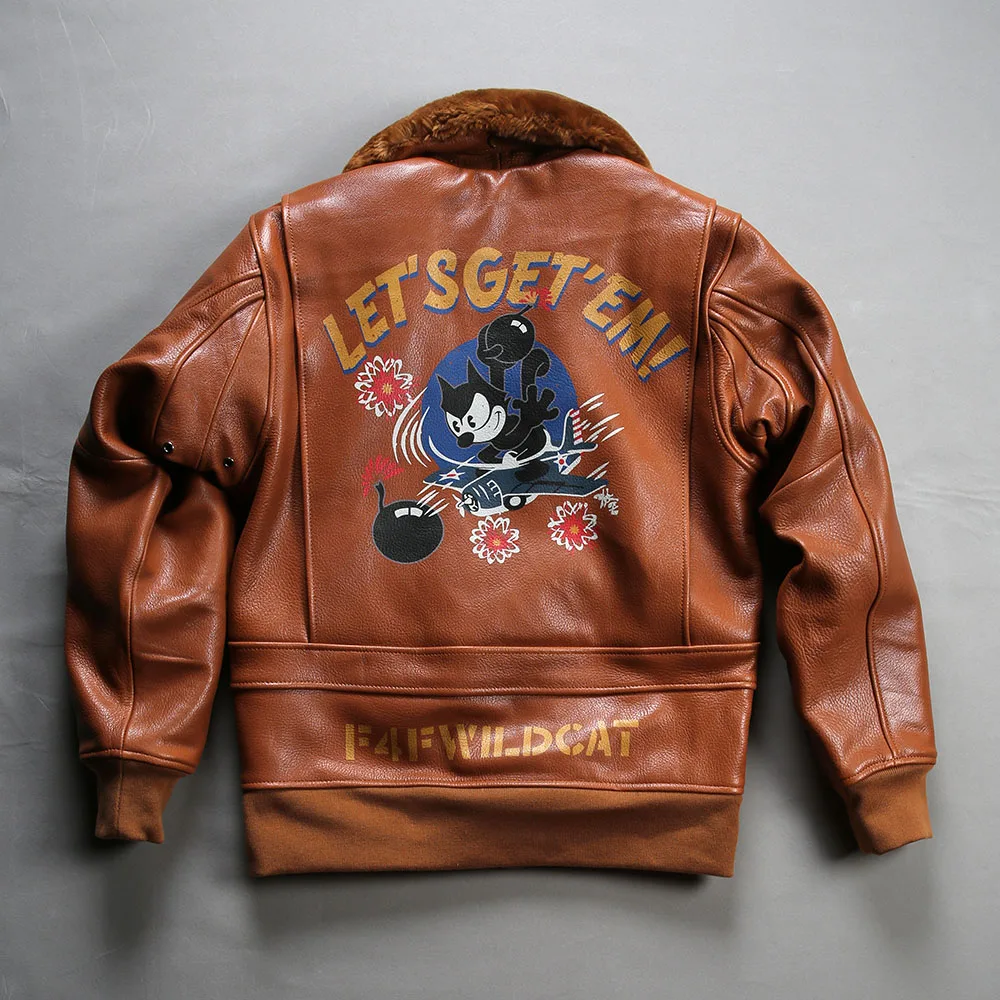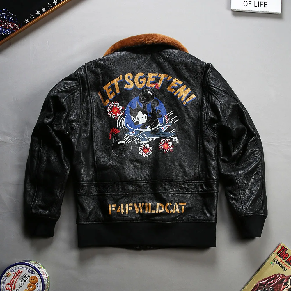 Be the first to review “Winter Bomber pilot Coat Detachable Fur Collar Black Orange Printed Cotton Lined Men’s Cowhide Goat Skin Real Leather Jackets” Cancel reply