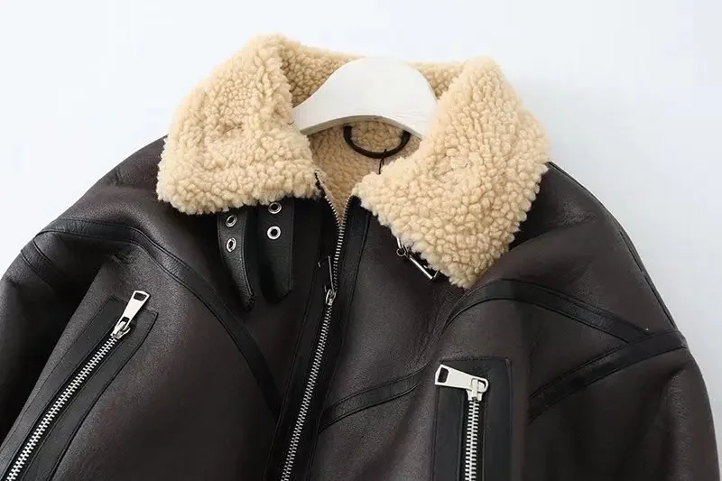 Winter Women Streetwear Faux Lamb Leather Fur Short Jacket with Belt Moto Biker Thick Warm Sheepskin Coat Outwear NewWinter Women Streetwear Faux Lamb Leather Fur Short Jacket with Belt Moto Biker Thick Warm Sheepskin Coat Outwear New