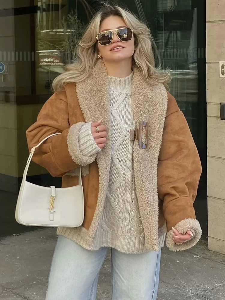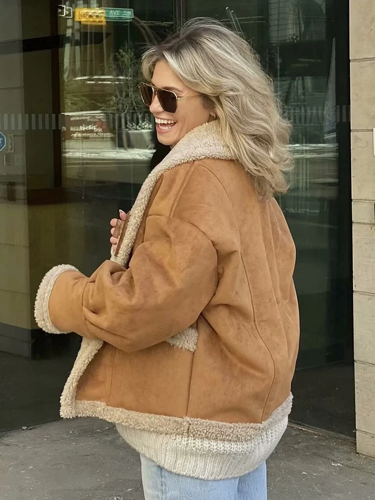 Winter Women’s Suede Lamb Wool Jackets For Women Warm Coat Sheepskin Leather Loose Casual