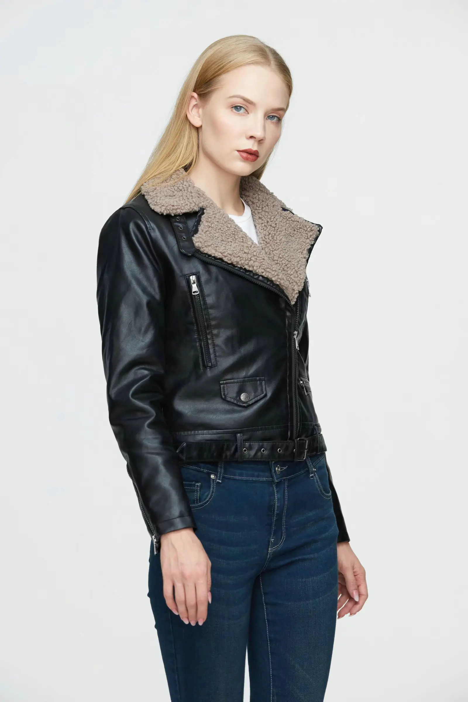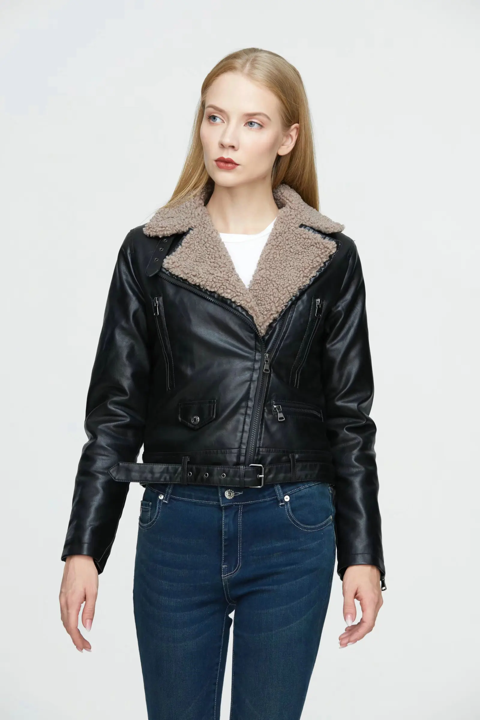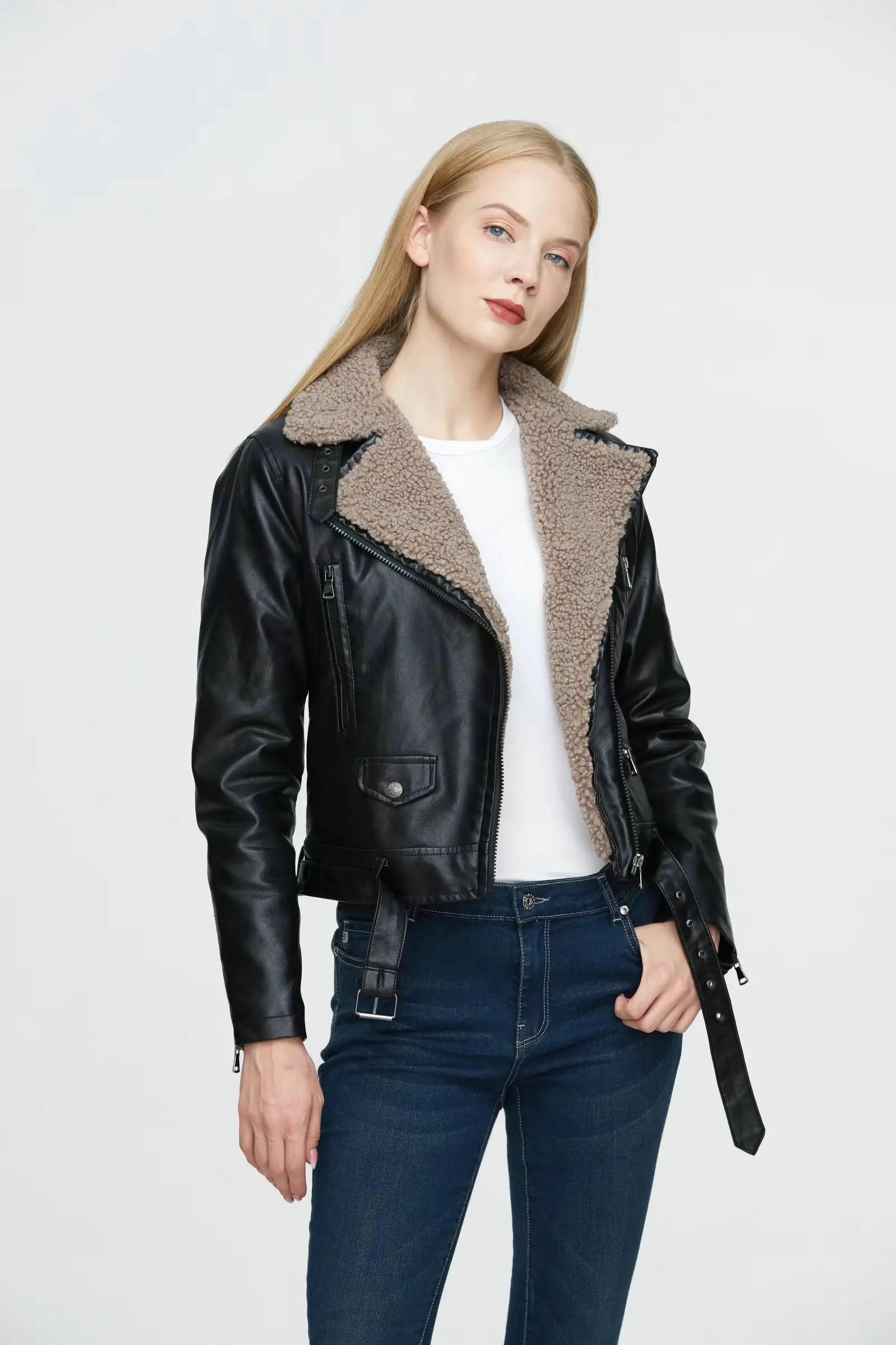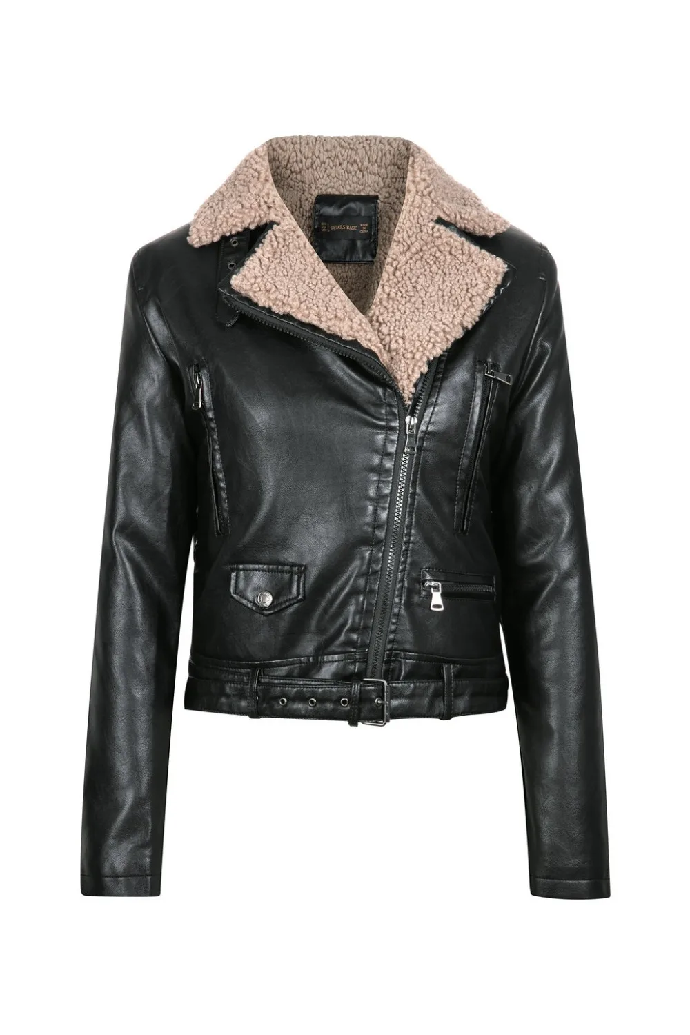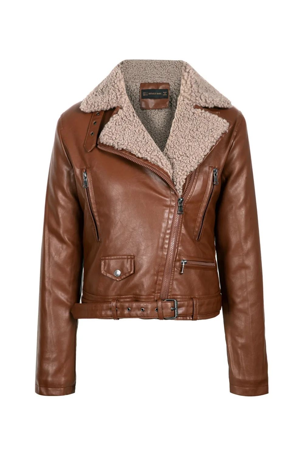 Women’s Faux Sheepskin Leather Teddy Fur Jackets, Female Vintage Motor Streetwear Coats with Belt, Thick, Warm, Coffee,Chic 2025