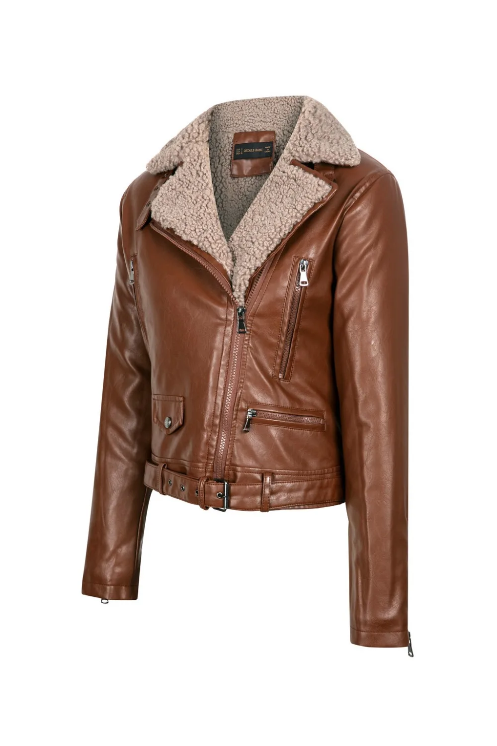 Women's Faux Sheepskin Leather Teddy Fur Jackets, Female Vintage Motor Streetwear Coats with Belt, Thick, Warm, Coffee,Chic 2025Women’s Faux Sheepskin Leather Teddy Fur Jackets, Female Vintage Motor Streetwear Coats with Belt, Thick, Warm, Coffee,Chic 2025